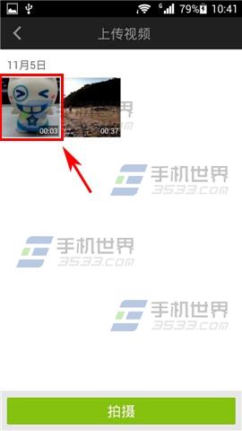 2)点击右上角【上传】,选择手机里的视频或者重新拍摄视频,小编此处以选择手机里面的视频为例。(如下图)