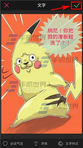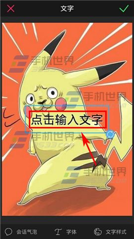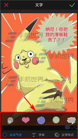 3)输入文字后,可以在下方对文字的【会话气泡】样式、【字体】和【文字样式】进行调整,完成后点击右上角【√】保存即可。(如下图)