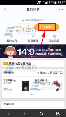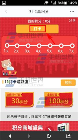2)点击【打卡赢积分】,最后点击【打卡】即可领取到积分了。(如下图)