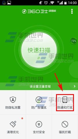 1)首先先打开【360卫士极客版】,进去之后点击【防通知打扰】。(如下图)