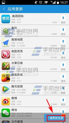2)接着点击右下角的【应用更新】,最后点击【一键更新全部】。(如下图)