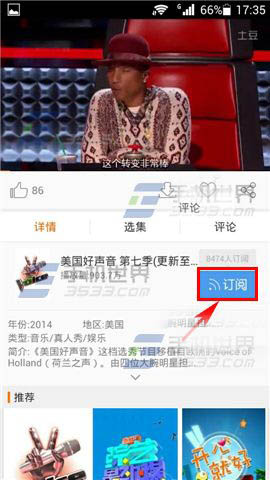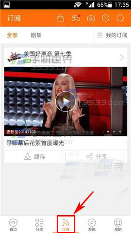1)打开手机土豆视频,选择自己喜欢的节目,比如小编看的【美国好声音】。(如下图)