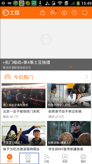 2、进入土豆视频页面后,点击页面下方的“分类”如图所示: