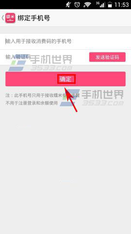 3)最后把手机号和验证码输入进去点击【确定】就可以了。(如下图)