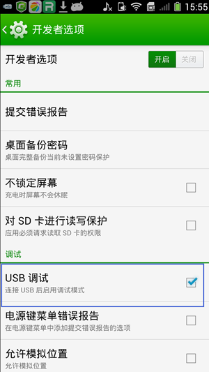 二、手机未连接同时提示打开usb连接,手机端打开设置—找到usb调试选项,勾上即可,如下图所示:(个别手机会有所差别,一般是在开发者选项里面)