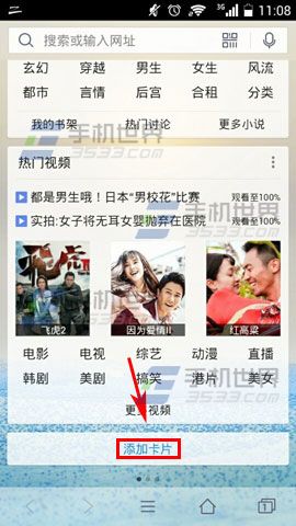 1)首先先打开手机QQ浏览器,进之后把页面向上一滑,滑到最下面点击【添加卡片】,然后选择自己喜欢的点击【添加】就可以了。(如下图)