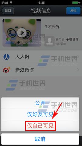 光影DV是人人公司推出的一款视频分享应用,可将随手拍摄视频记录下来,并一键分享至人人网、微博等社交平台,而其不限时长的自由拍摄以及强大的后期处理受到很多朋友的喜爱。现在很多友友都喜欢上传视频分享给好友们看,但总是有一两段视频不想让认何人看啊!要怎么设置呢?下面小编就为大家介绍光影dv视频怎么设置成仅自己可见的方法,一起来看看吧!