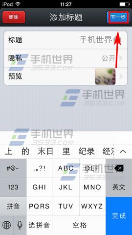 2)拍摄完成后点击最下方的【摄像机】,进去之后填写标题完成后点击【下一步】。(如下图)