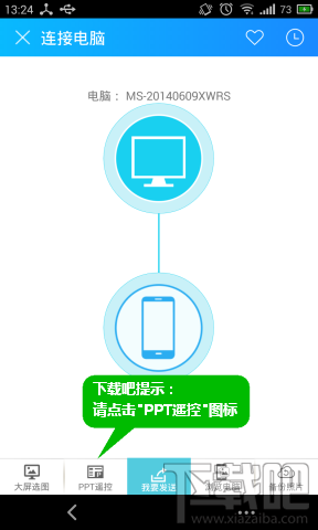 4.回到手机端的茄子快传,在连接电脑界面点击底部的PPT遥控图标。
