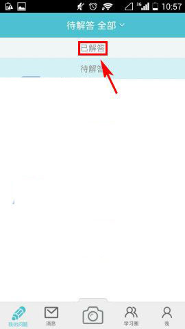 1)首先先打开学习宝,进去之后点击最上方的【全部】,弹出选择后点击【已解答】。(如下图)