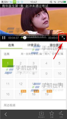 1)首先打开爱奇艺视频,在首页选择要看的视频点击进入,点击【放大标志】。(如下图)