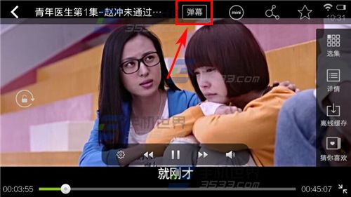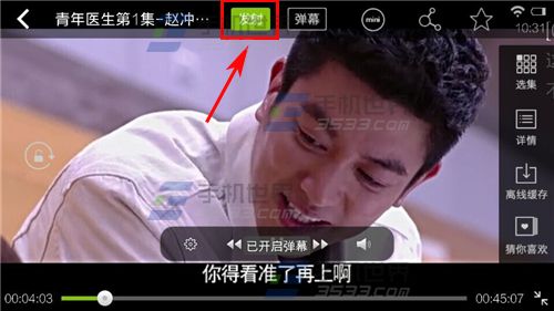 2)进入播放视频时在上方点击【弹幕】便开启弹幕。(如下图)