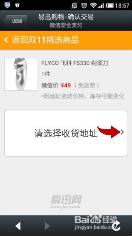 2、在“微信每日精选商品”可以通过往下滑动选择自己喜欢的商品,点击右下角的“立即购买”按钮,进入“易迅购物-确认交易”页面