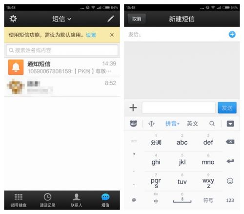 2、短信智能管理:通知类短信自动归档,垃圾短信智能拦截,让你的短信列表清爽整洁;支持短信加锁,保护你的隐私