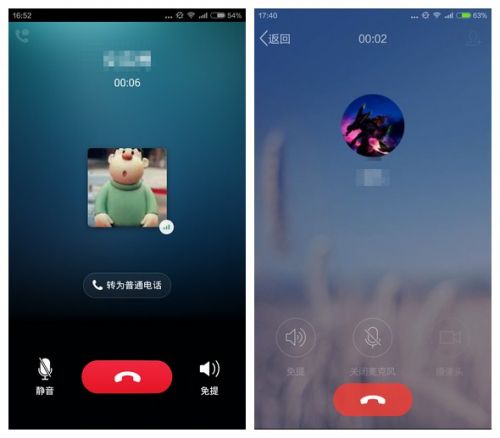 微信电话本免费通话页面(左)手机QQ语音功能通话页面(右)