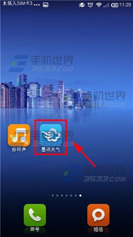 1)打开【墨迹天气】,点击左上角的【图标】。(如下图)
