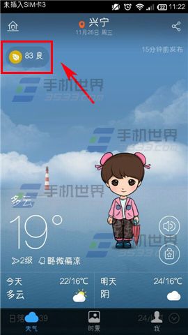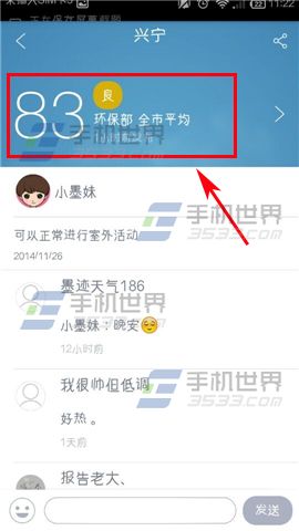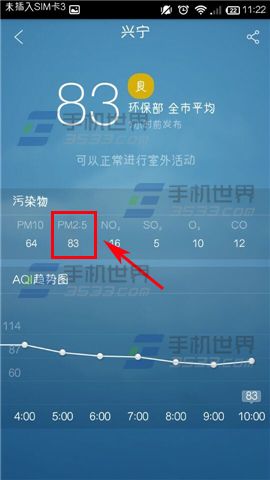2)然后点击上方的【指数栏】,这里就可以看到自己所在城市的PM2.5指数啦。(如下图)
