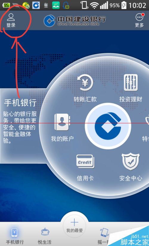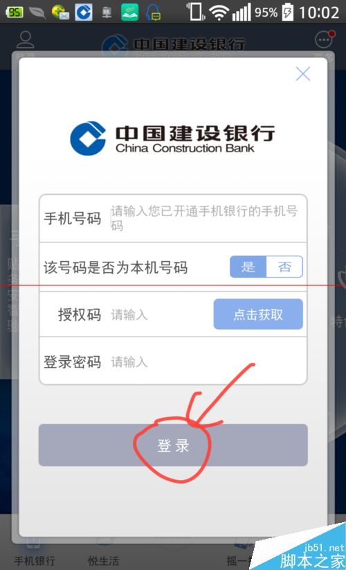 3、在这里如果你以前开通过手机银行,直接点击:“登录”。