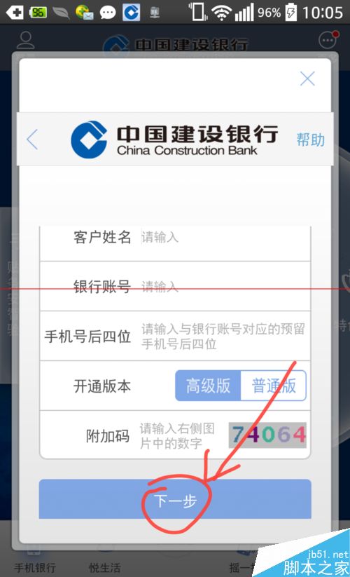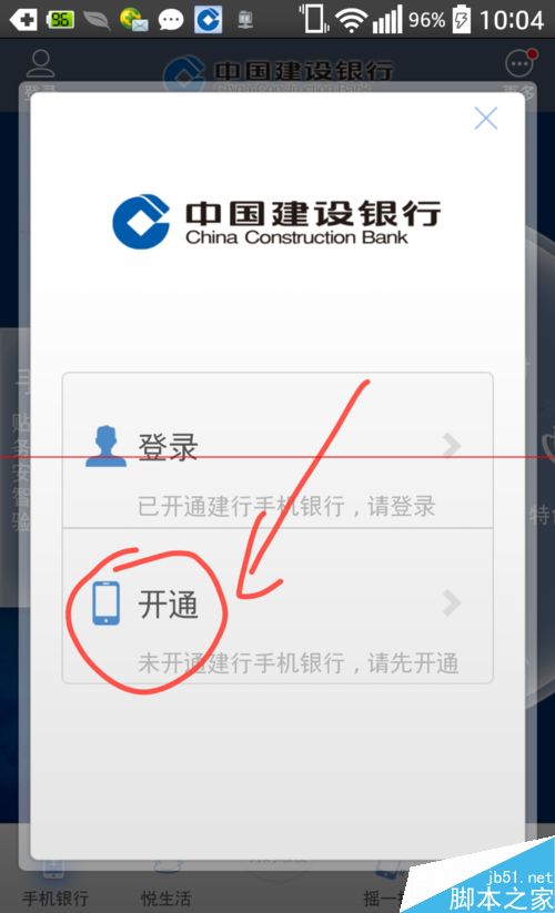 5、若你的银行未开通过手机银行,第一次使用手机银行软件,则需要进行开通。