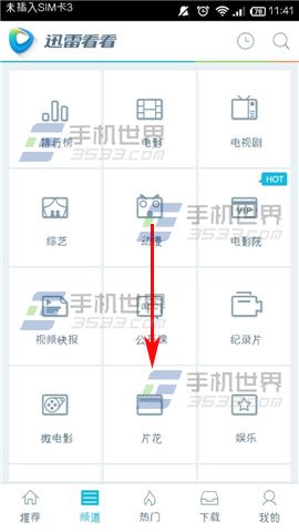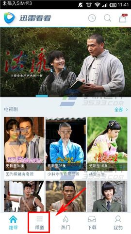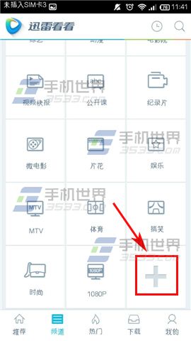 1)打开手机迅雷看看,点击【频道】,往下拉。(如下图)