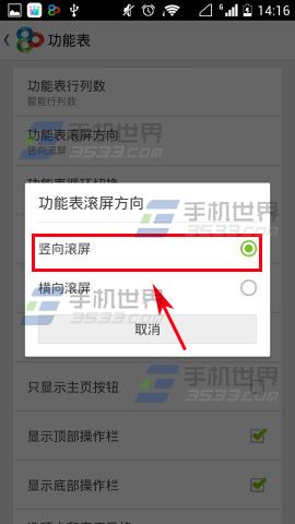 2)然后点击【功能表滚屏方向】,最后选择自己喜欢的方向点击一下就可以了。(如下图)