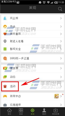 1)打开PPS影音,点击【发现】,接着点击【活动】。(如下图)