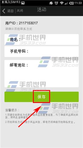 3)输入好姓名、联系号码跟地址后点击保存,信息就修改成功啦。(如下图)