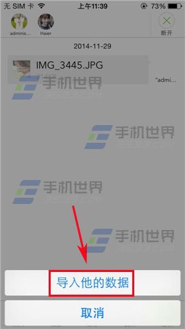 2)连接朋友之后点击【朋友头像】,弹出窗口点击【导入他的数据】。(如下图)