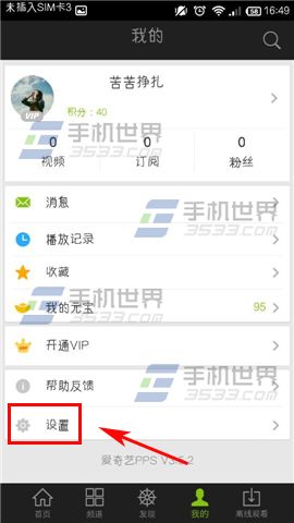 1)打开手机PPS影音,点击下方的【我的】,选择【设置】。(如下图)