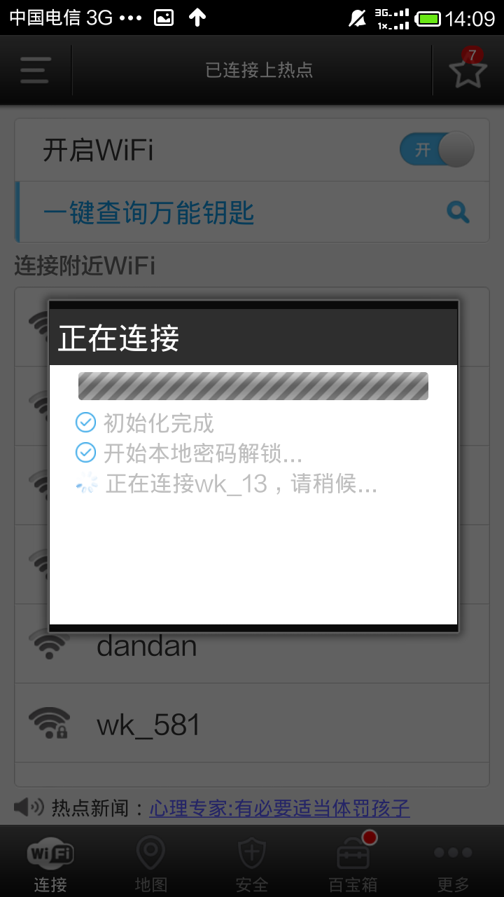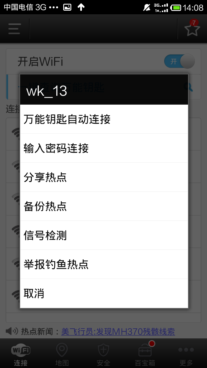 3. 点击有蓝色钥匙的热点,选择“万能钥匙自动连接”