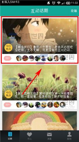 1)打开【求搭理】,点击一个【互动话题】,然后点击右上角的【图标】。(如下图)