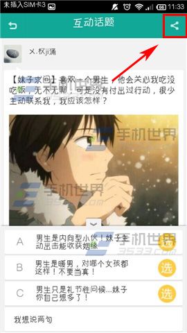 求搭理如何把互动话题分享给好友作答?遇到个不知道该怎么作答的话题,想让好友一起来帮帮忙,该怎么分享给好友作答呢,现在小编来教你求搭理如何把互动话题分享给好友作答的吧。