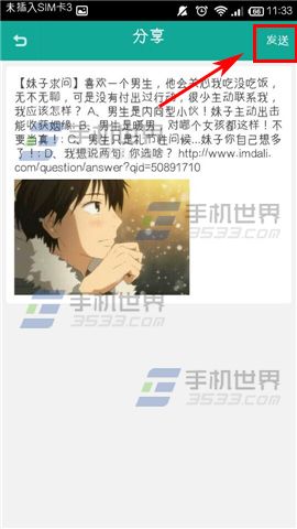 2)选择【QQ好友】,当然你也可以选择【微信】或者【新浪微博】,跳转至分享页面,编辑好内容后点击【发送】。(如下图)