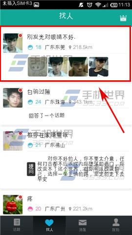1)打开【求搭理】,点击【找人】,选择一位心仪的对象,点击进入他的主页。(如下图)