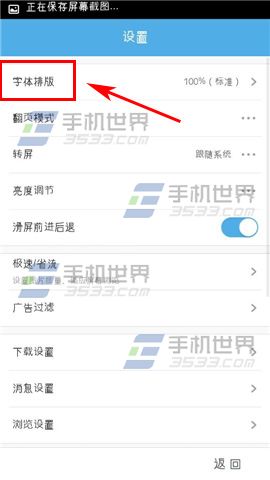 2)再点击选项里的【设置】,点击【字体排版】。(如下图)