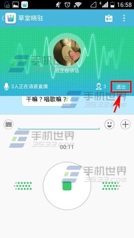 2)然后点击一下圆圈,就可以进行说话了,说完话后点击【退出】就可以了。(如下图)