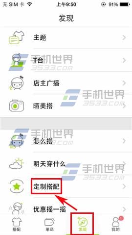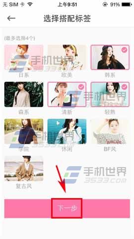 1)首先打开穿衣助手,点击【发现】,点击【定制搭配】,在界面选择喜欢的搭配风格标签,然后点击【下一步】。(如下图)