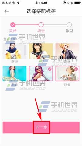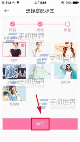 2)在界面选择搭配场合标签,点击【下一步】,最后选择搭配体型标签,点击【确定】。(如下图)