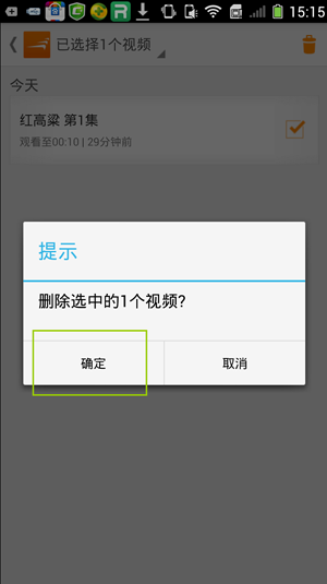 4、然后在显示出的界面,点击“确定”按键。这样手机风行观看历史记录视频就删除成功了。