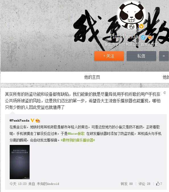 据脉歌CEO @PunkPanda称“其实所有的防盗功能和设备都有缺陷,我们能做的就是尽量降低用手机听歌的用户手机在公共场所被盗的风险,这是我们迈出的第一步,希望各大主流音乐播放器也能重视,哪怕只有少数的人因此受益也就值得了。”