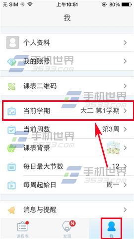 1)首先打开超级课程表,点击【我】,点击【当前学期】,进入界面点击【创建新学期】。