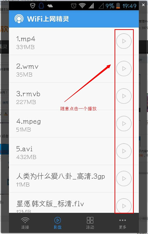 4.打开手机里上网精灵的影盘(或者扫描二维码或手机浏览器输入):