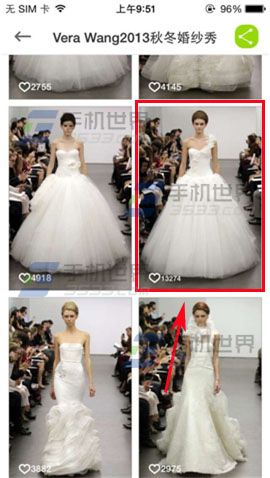2)在界面选择看要的婚纱,在右下方点击【消息图像】。