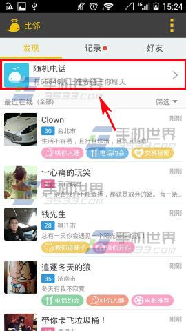 1)首先先打开【比邻】,进去之后点击【随机电话】。(如下图)