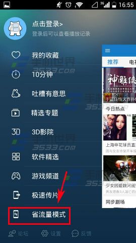2)然后点击【省流量模式】,最后把【2G/3G在线播放提醒】打开就可以了。也可以设置下方两个模式。