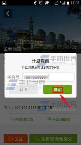 2)然后点击【开盘提醒我】,最后输入自己的手机号点击【确定】就可以了。(如下图)