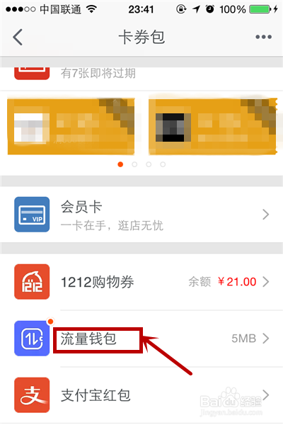 2、如下图所示,就会发现“流量钱包”,点击进入。