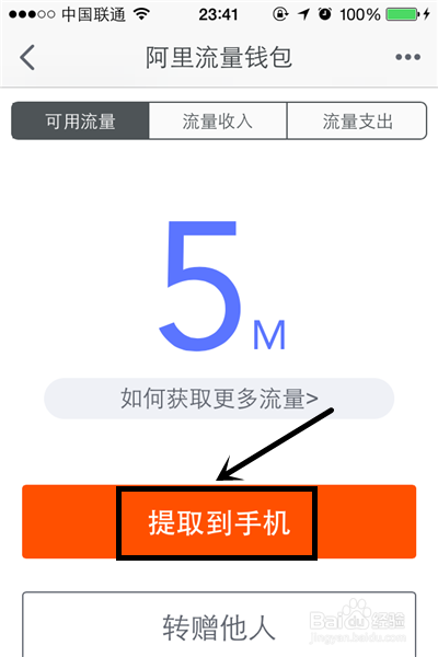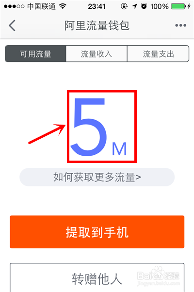 3、在流量钱包中,就可以看到你通过抽取宝箱获取的流量,至于有流量,才可以点击“提取到手机”的选项。