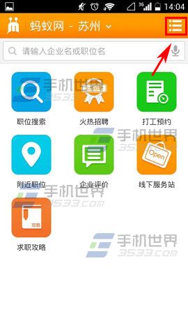 1)首先先打开【蚂蚁打工】,进去之后点击右上角【三横】。(如下图)