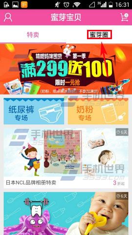 1)首先先打开【蜜芽宝贝】,进去之后点击【蜜芽圈】。